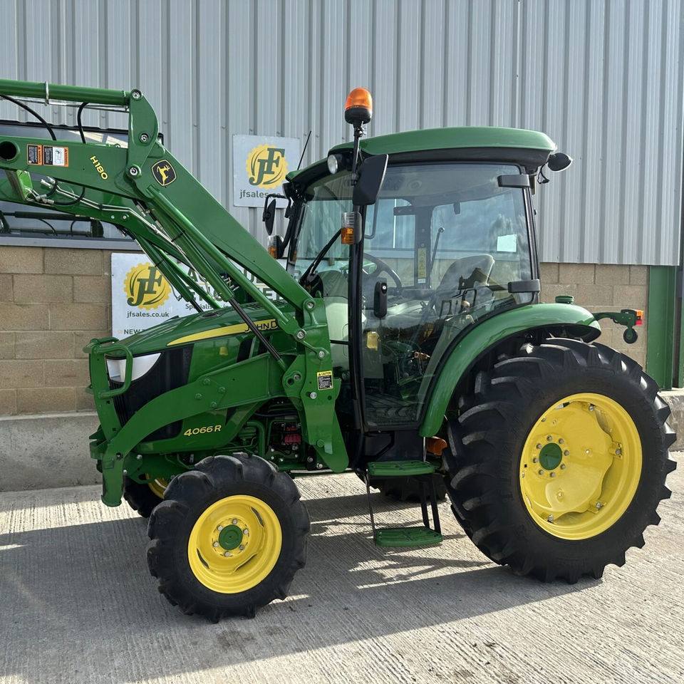 รถแทรกเตอร์อเนกประสงค์ขนาดกะทัดรัด John Deere รุ่น 4066R กำลัง 66 แรงม้า ขับเคลื่อน 4 ล้อ ระบบส่งกำลังไฮโดรสแตติก พร้อมอุปกรณ์ตัก สำหรับงานฟาร์ม จัดสวน และงานหนัก
