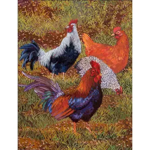 John Powell ศิลปะชีวิตในชนบท POV-JP012AT ไก่และไก่กระเบื้องสำเนียงกระเบื้องที่อยู่อาศัยของตกแต่งแผ่นโลหะ