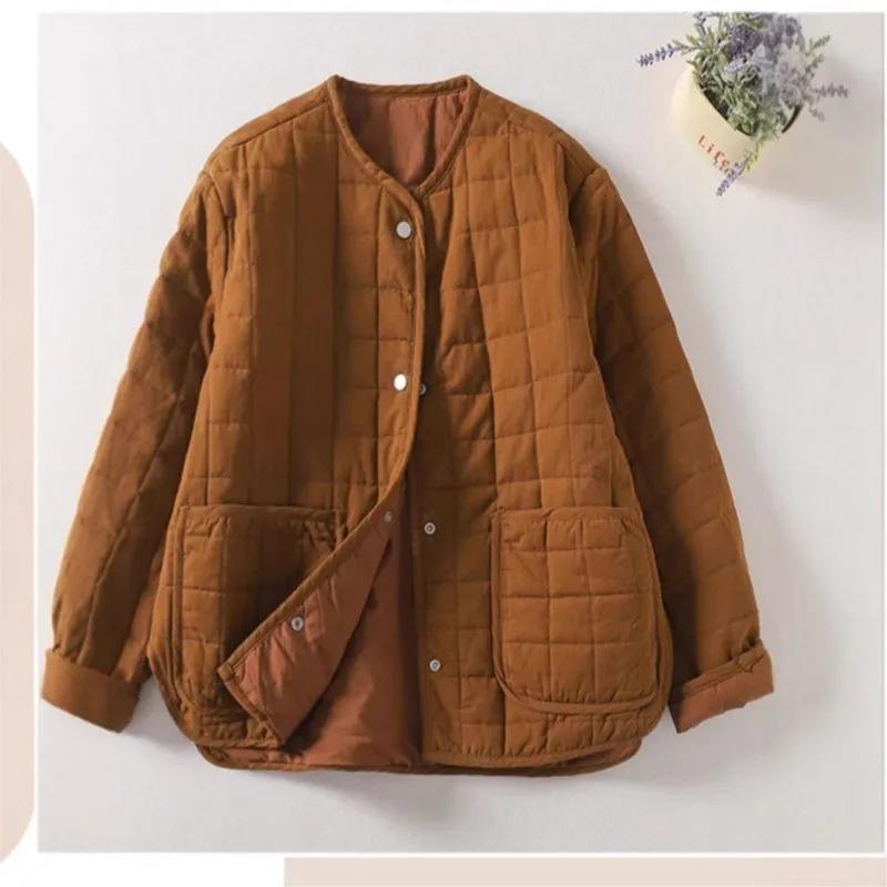 Johnature เสื้อคลุมกันหนาวมีกระดุมแถวเดียวสำหรับผู้หญิง, เสื้อปาร์เก้สไตล์วินเทจสไตล์วินเทจผ้าลินินผ้าฝ้ายใหม่2025ฤดูหนาว