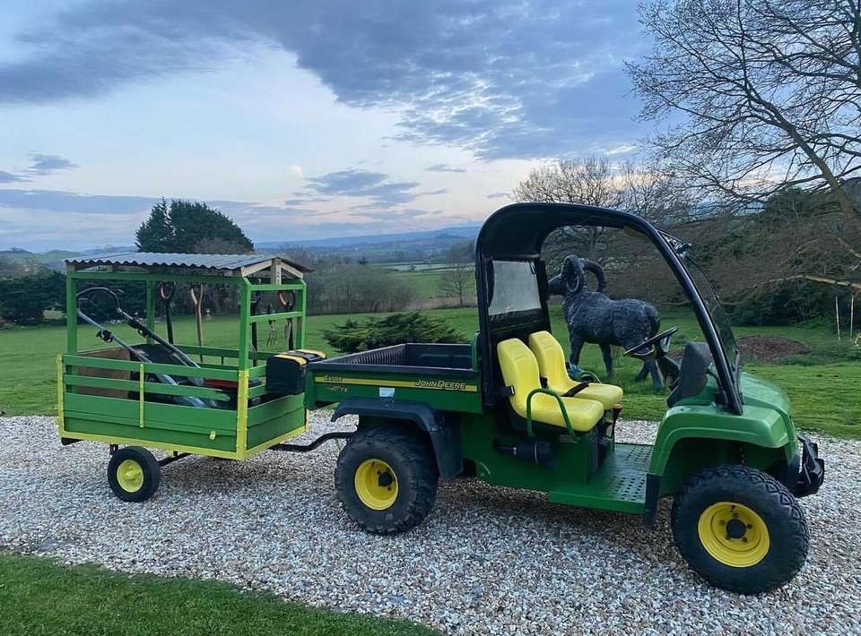 เครื่องตัดหญ้า John Deere พร้อมแบคโฮด้านหน้า