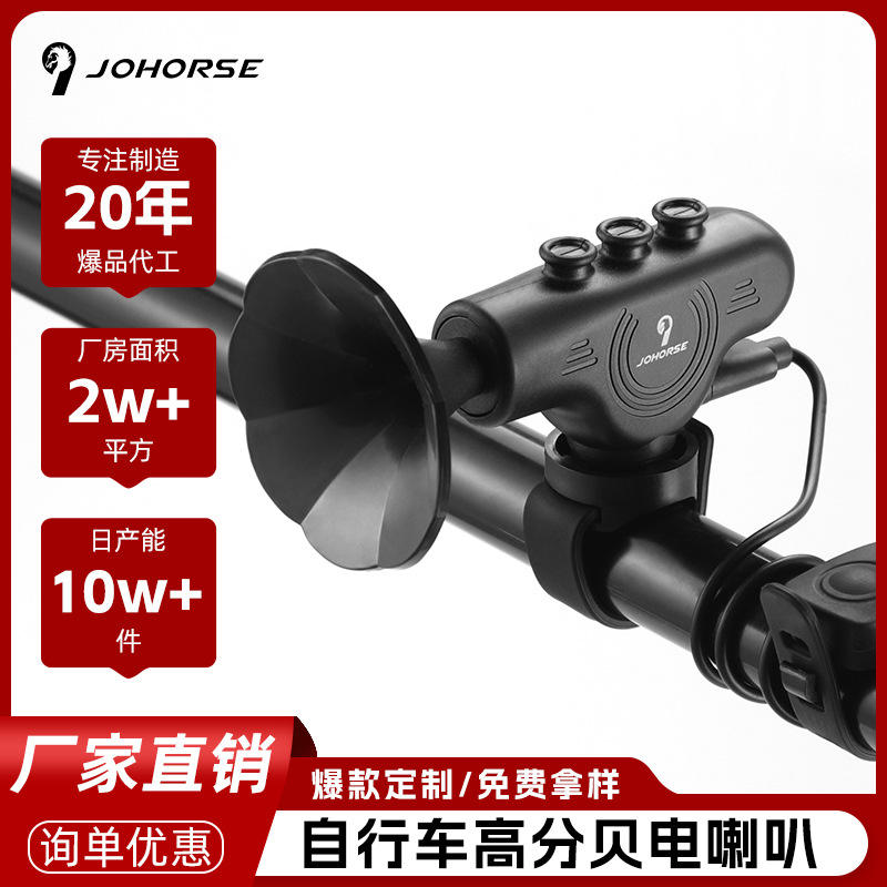 แตรจักรยานไฟฟ้า Johorse สีดำ ABS กันน้ำ ชาร์จ USB ได้ อุปกรณ์เสริมสำหรับการปั่นจักรยาน