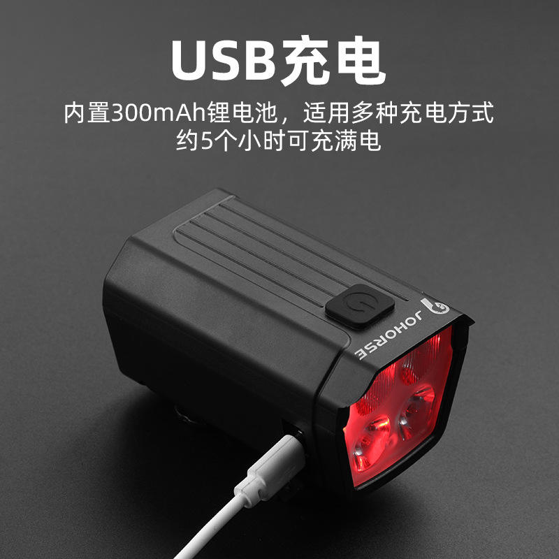 ไฟหน้าจักรยาน Johorse แบบ LED พลังงานแสงอาทิตย์ กันน้ำ IP4 4 โหมด พร้อมแตร สำหรับปั่นจักรยาน