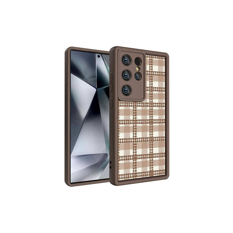 จอยครีเอทีฟเคสซิลิโคนสีน้ำตาลเข้มคลาสสิคสำหรับซัมซุงสำหรับกาแลคซี่ เอส 23 อัลตร้า พรีเมียมพิมพ์ลายป้องกันกล้องด้านหลังสำหรับ 14 พลัส