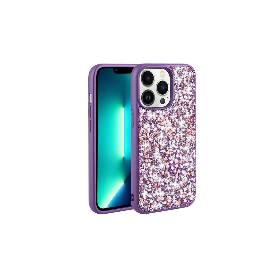 จอยครีเอทีฟ ลิเนีย ซีรีส์เคสซิลิโคนสีม่วงเข้มดีไซน์หรูหราประดับด้วยกลิตเตอร์และเพชรสำหรับไอโฟน 12 โปรแม็กซ์ป้องกันรอยนิ้วมือ