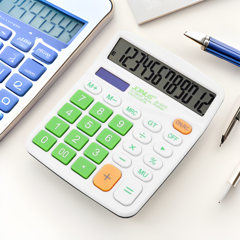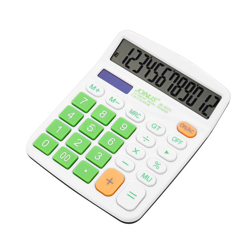 เครื่องคิดเลขตั้งโต๊ะ Joinus 12 หลัก ใช้พลังงานสองระบบ โซลาร์เซลล์และแบตเตอรี่ สำหรับสำนักงานและการเงิน พร้อมฟังก์ชั่นเสียง สีขาว