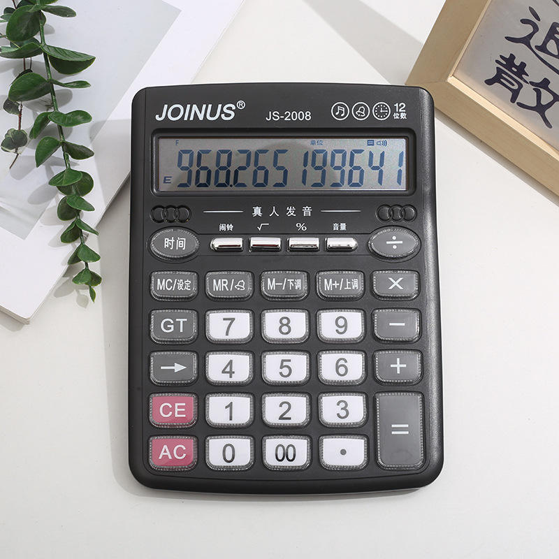 เครื่องคิดเลขเสียงพูด Joinus Js-2008 12 หลัก ปุ่มขนาดใหญ่ สำหรับใช้ในสำนักงานทางการเงิน สีดำ พร้อมฟังก์ชั่นเสียงพูดเหมือนคนจริง