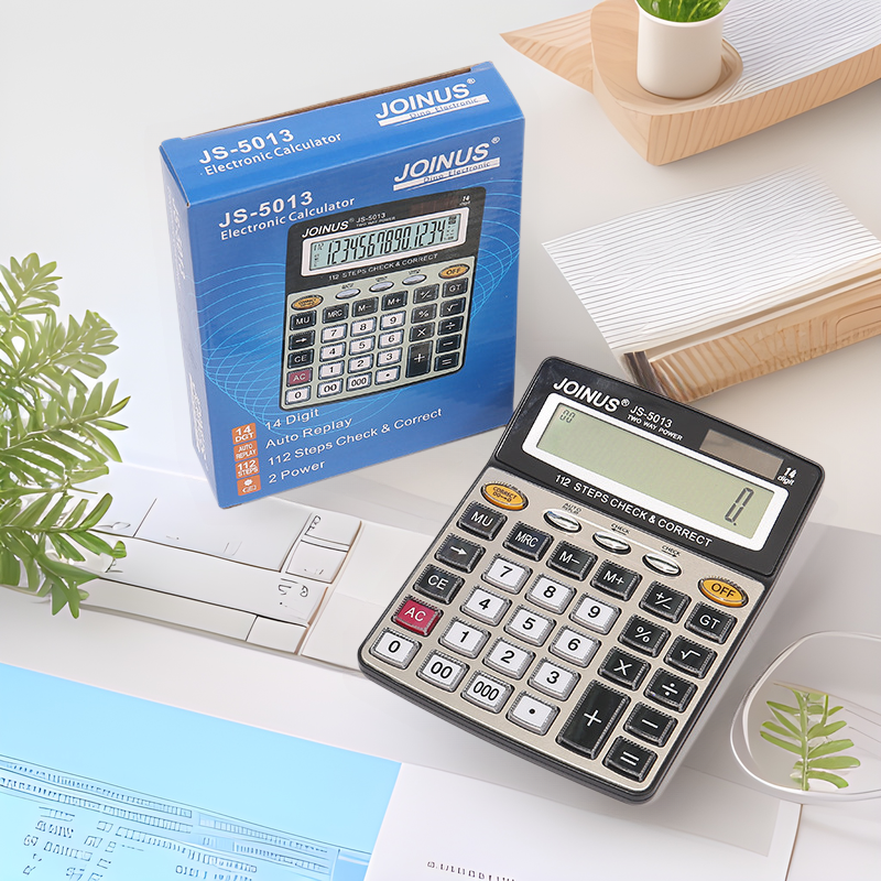เครื่องคิดเลขตั้งโต๊ะ Joinus Js-5013 14 หลัก พลังงานแสงอาทิตย์และไฟฟ้า ใช้สำหรับบัญชี การเงิน ของขวัญทางธุรกิจ พร้อมพิมพ์โลโก้
