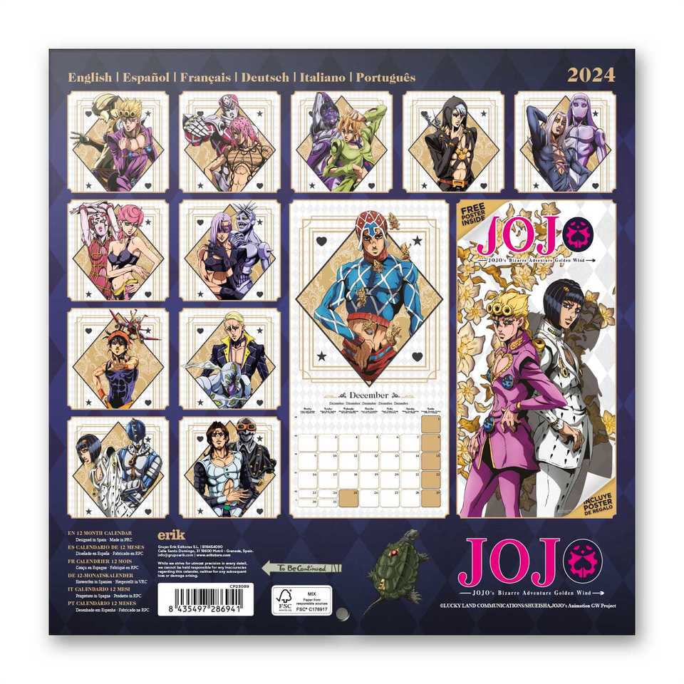 ปฏิทินติดผนังโจโจ้'ส บิสเซอเร แอดเวนเจอร์ 2024 ฉากมังงะที่น่าสนใจสำหรับแฟนๆ