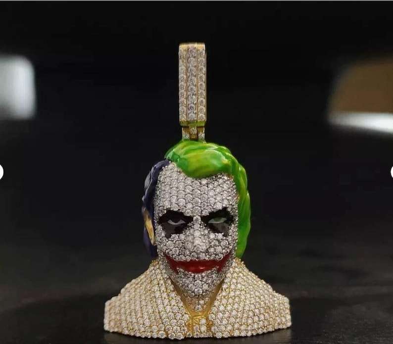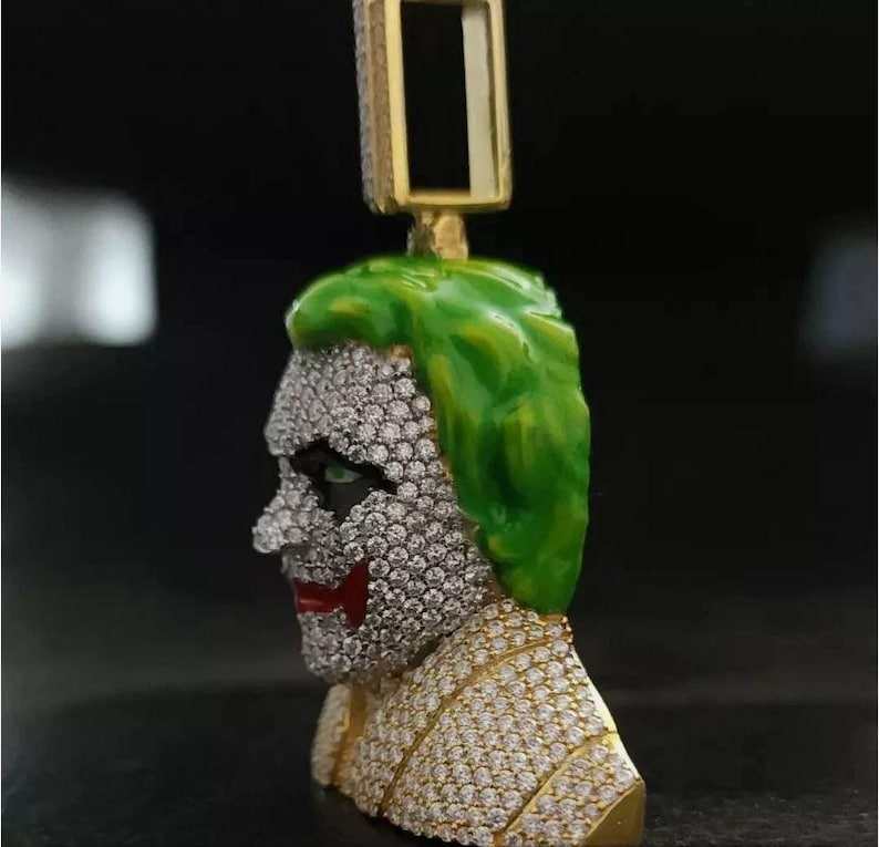 จี้รูปหน้าโจ๊กเกอร์ 3 มิติ ประดับเพชรโมอิสซาไนต์ เงินสเตอร์ลิงชุบโรเดียม สไตล์ฮิปฮอป แร็ปเปอร์ บลิงค์ เครื่องประดับหรูหราสำหรับผู้ชาย สตรีทแวร์