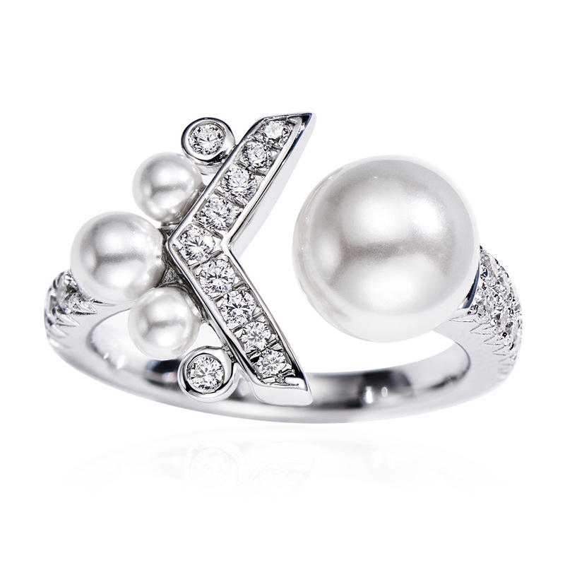 แหวนเงินแท้ S925 รูปทรงตัววี ประดับมุกและเพชรแตกสไตล์ฝรั่งเศส ดีไซน์โรแมนติก หรูหรา ทันสมัย ใช้งานได้หลากหลาย