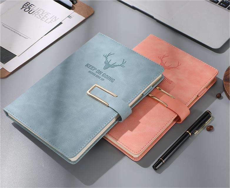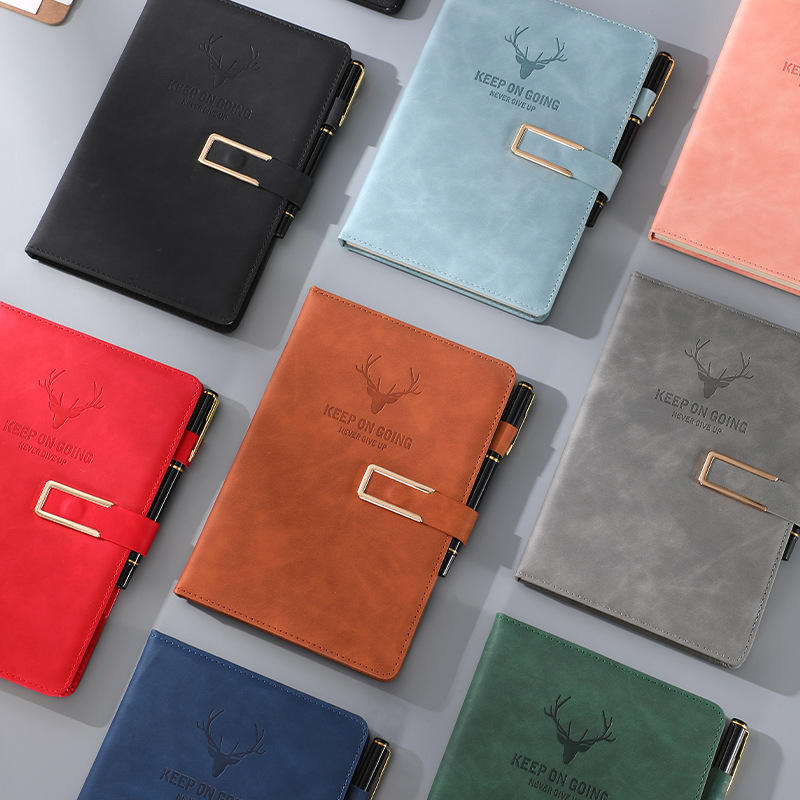 สมุดไดอารี่ปกแข็งหนัง PU B5 A5พิมพ์ลายแบบกำหนดเองพร้อมหัวเข็มขัดแม่เหล็ก