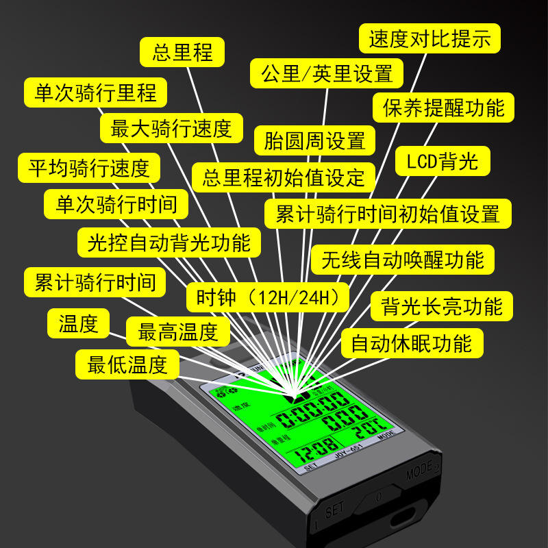จอย 651 ไมล์จักรยานไร้สาย พร้อมไฟหน้า นาฬิกาปลุก พาวเวอร์แบงค์ ไฟกลางคืน สีดำ 0-140 กม./ชม. เครื่องวัดความเร็วสำหรับจักรยาน
