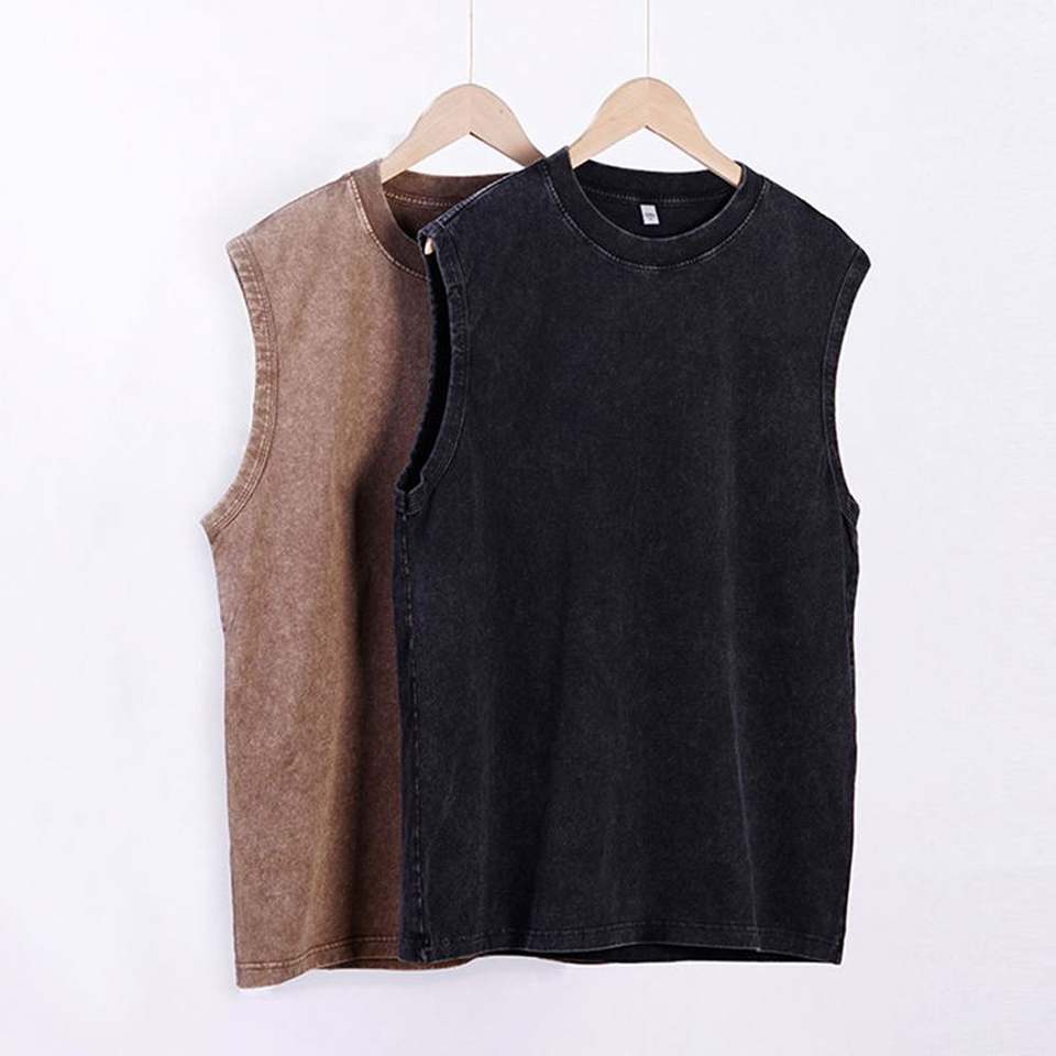 Joy Chuang เสื้อยืดผ้า100% วินเทจของผู้ชายเสื้อกั๊กถักโอเวอร์ไซส์ผ้าคอตตอนแขนกุด