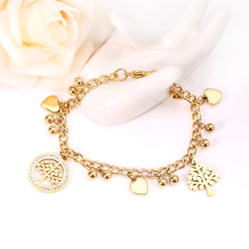 จี้ทองคำชุบสแตนเลสสตีล รูปหัวใจและต้นไม้ พร้อมสร้อยข้อมือสแตนเลสสตีล
