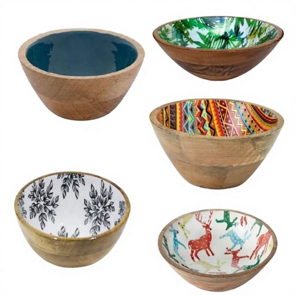 ชามไม้ทนทานรักษ์โลก ดีไซน์เคลือบเอนาเมล สำหรับเสิร์ฟอเนกประสงค์ เหมาะสำหรับงานสังสรรค์