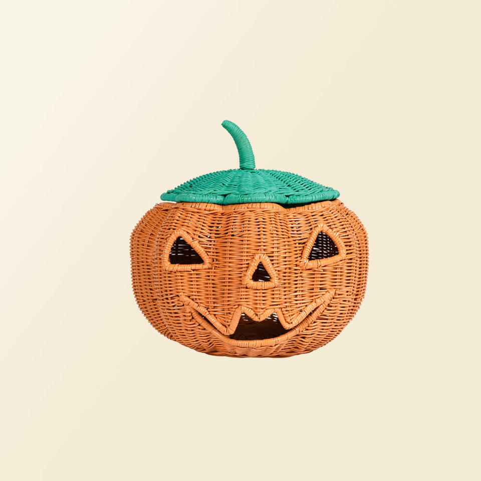 ตะกร้าฟักทองหวายทำด้วยมือสำหรับตกแต่งฮาโลวีนสนุกสนานของตกแต่งใช้งานได้เหมาะสำหรับการตกแต่งบ้านและเป็นของขวัญตามเทศกาล
