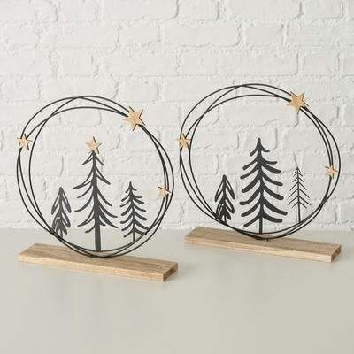 ของตกแต่งคริสต์มาสโลหะแสนสนุกสนานพร้อมฐานไม้ ดีไซน์ธีมวันหยุดอันอบอุ่นใจ สำหรับตกแต่งโต๊ะอาหาร