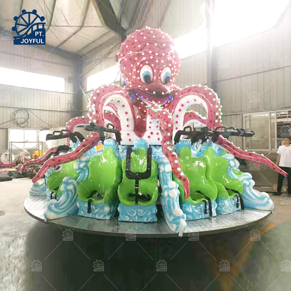ม้าหมุนแมนดี้แบบหมุนรูปปลาหมึกสำหรับเต้นรำสวนสนุกในร่ม/กลางแจ้งเครื่องเล่นสวนสนุกสำหรับห้างสรรพสินค้าทำจากโลหะคุณภาพสูง