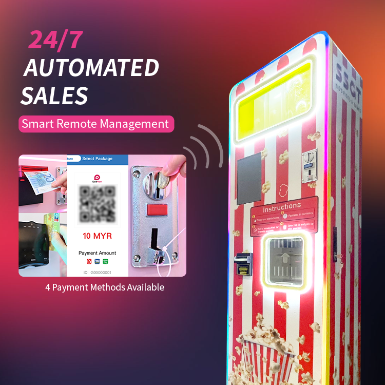 ตู้จำหน่ายข้าวโพดคั่วอัตโนมัติ Joyfunplay บริการ 24 ชั่วโมง รองรับการชำระเงินด้วยเหรียญ คิวอาร์โค้ด และบัตร สำหรับโรงภาพยนตร์และซูเปอร์มาร์เก็ต