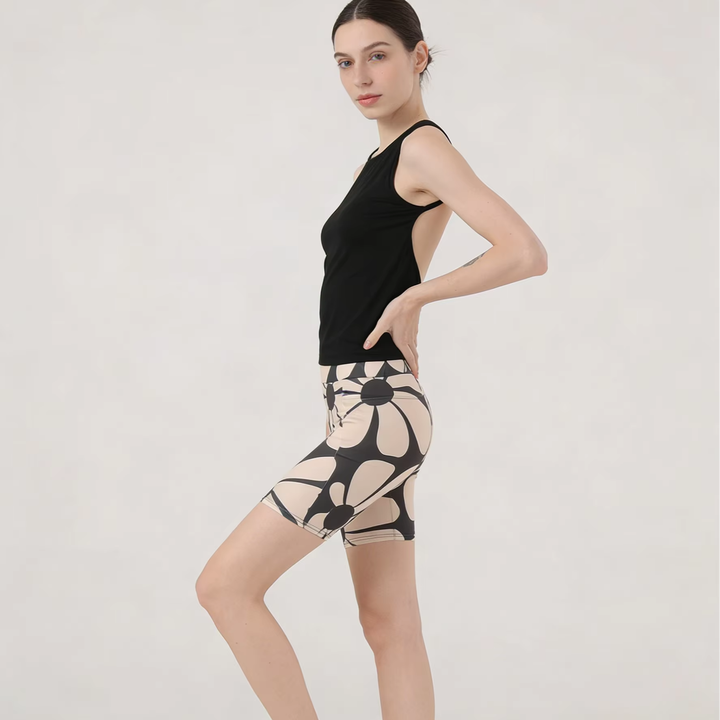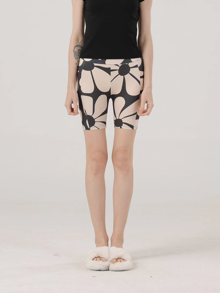 กางเกงขาสั้นจักรยานเอวสูงลายดอกไม้ขนาดใหญ่ แพ็ค 2 ตัว สำหรับผู้หญิง ยี่ห้อ Joyinspring มีกระเป๋า ระบายอากาศได้ดี ยืดหยุ่น ใส่สบาย เหมาะสำหรับออกกำลังกาย