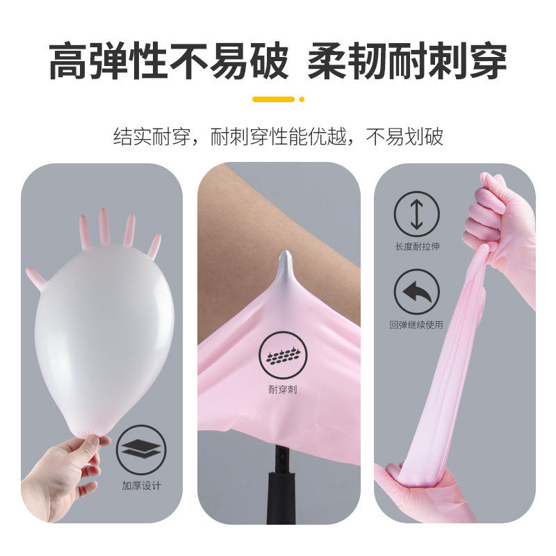 ถุงมือครัวไนไตรล์ ยี่ห้อจอยยัง ขนาด 12 นิ้ว เกรดอาหาร กันน้ำ ใช้แล้วทิ้ง รองรับหน้าจอสัมผัส สีชมพูขาว