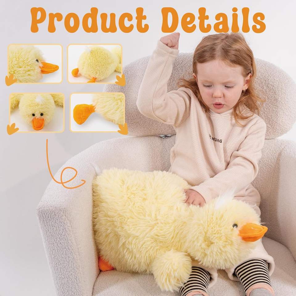 Jrystar 24 "ตุ๊กตาสัตว์ยัดนุ่นรูปเป็ดสีเหลืองของเล่นนุ่มสำหรับเด็ก
