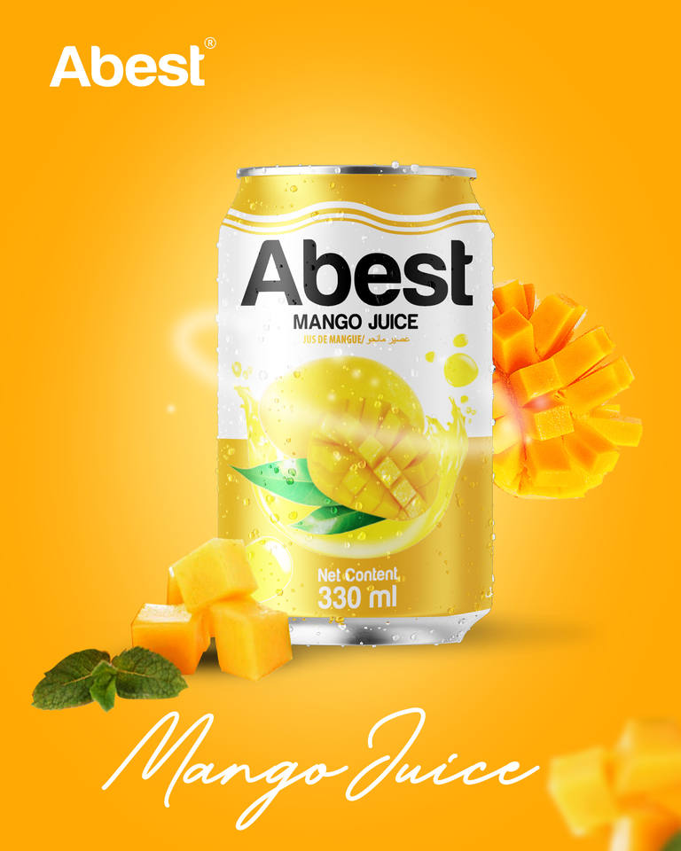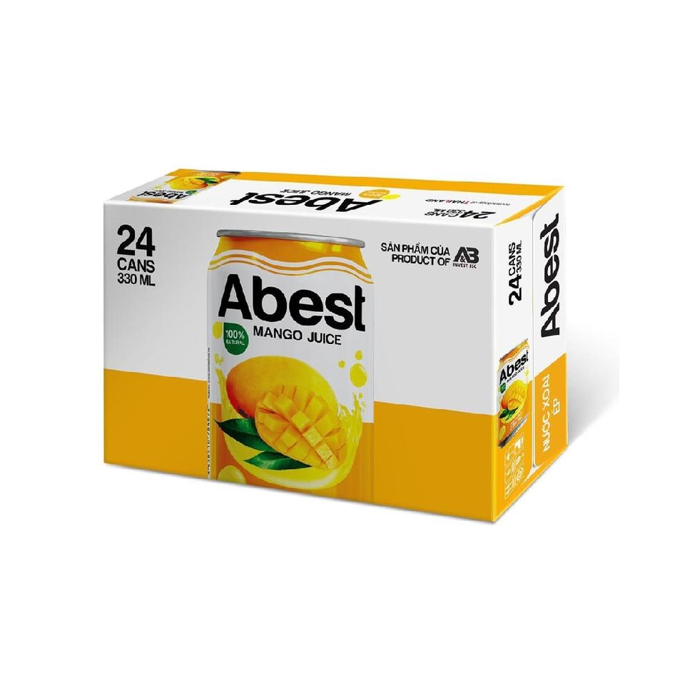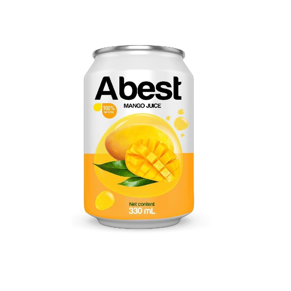 ผู้จัดจำหน่ายเครื่องดื่มน้ำผลไม้จำนวนมาก น้ำมะม่วงออร์แกนิคแท้ 100% ยี่ห้อ Abest บรรจุกระป๋อง 330 มล. จาก A&B เวียดนาม น้ำอัดลม