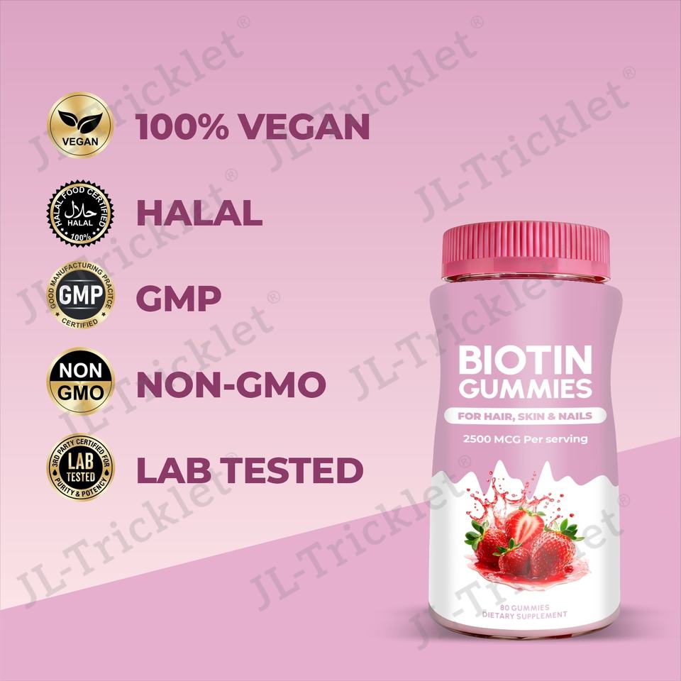 Julong OEM Label Hair Skin Nails Gummies Supplement Sugar Free Collagen Biotin Gummy