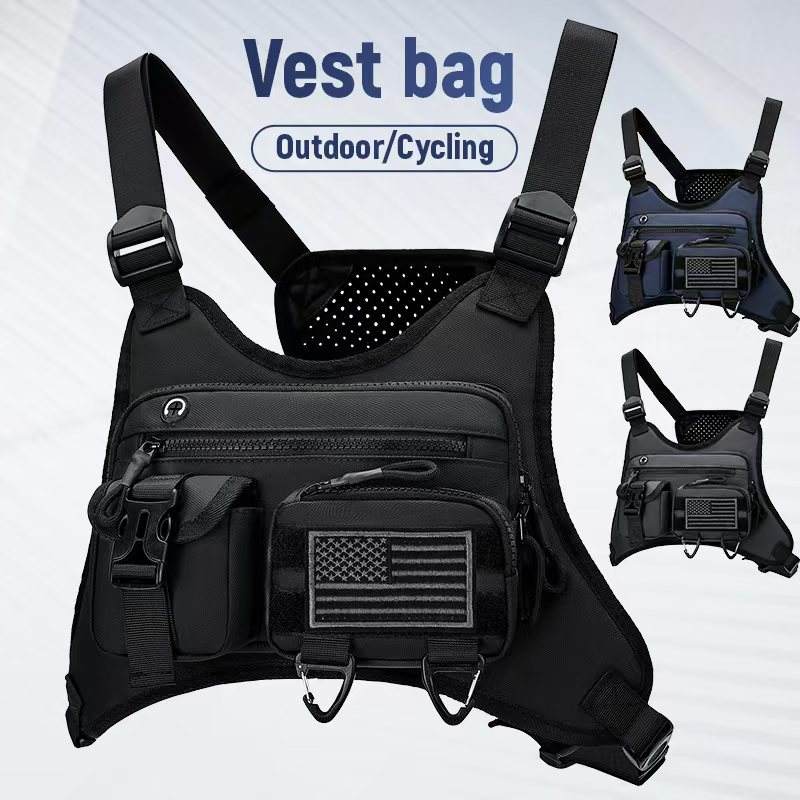 Juma River เสื้อกล้ามระบายอากาศได้ดี, กระเป๋าคาดอกกันน้ำสำหรับเล่นกีฬากลางแจ้งเสื้อกั๊กยุทธวิธีพร้อมซับในไนลอนสำหรับขี่จักรยาน