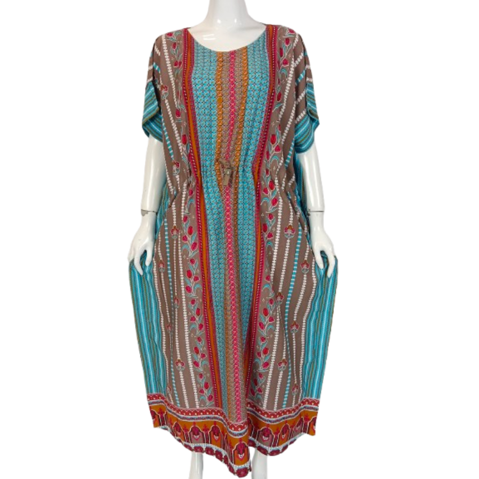 ชุดเดรสยาวคลุมเท้า แขนสั้น เอวยางยืดเรียบง่าย ไซส์ใหญ่พิเศษ รุ่นจัมโบ้ คาฟาน เหมาะสำหรับใส่นอน ซักได้ ระบายอากาศดี และนุ่มสบาย ใช้ได้ทุกวัน