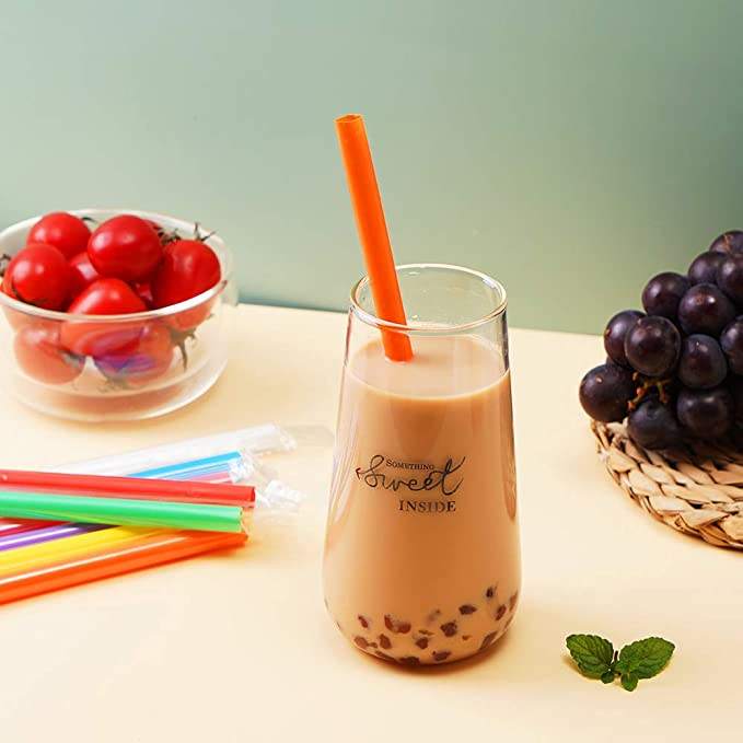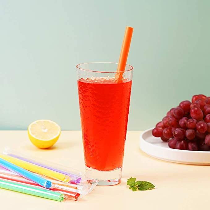 หลอดดูดน้ำพลาสติกจัมโบ้สำหรับสมูทตี้ มิลค์เชค ชานมไข่มุก หลอดใช้แล้วทิ้งหลากสีสันสดใส