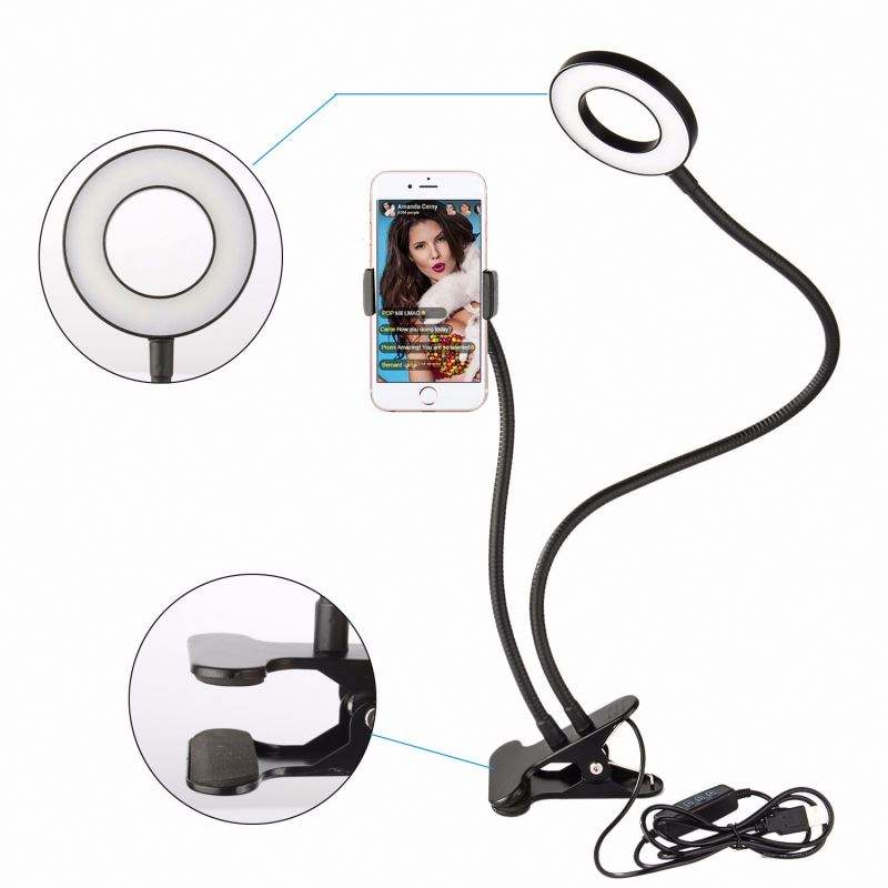 Packaging Details:ที่วางโทรศัพท์มือถือแบบ2-in-1พร้อมไฟวงแหวนเซลฟี่ LED สำหรับสตรีมสดคลิปหนีบโทรศัพท์ปรับแสงไฟแต่งหน้า
