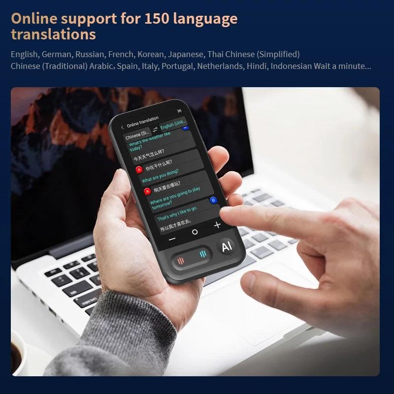 Jumon Ai AMOLED ตัวแปลแบบพกพาพร้อมจอแสดงผล139ภาษารองรับแบตเตอรี่ขนาด1500mAh สำหรับการประชุมทางธุรกิจและการใช้งานแบบออฟไลน์