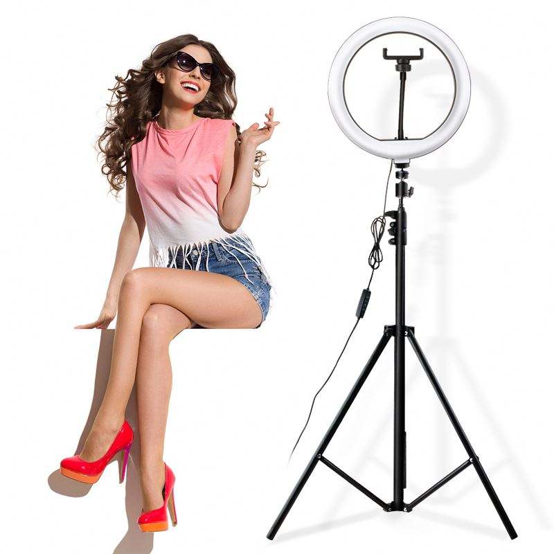 ไฟวงแหวนสำหรับถ่ายภาพเซลฟี่แอลอีดี33ซม. พร้อมขาตั้งขาตั้งกล้องหรี่แสงได้แหวนโทรศัพท์สำหรับ YouTube TikTok