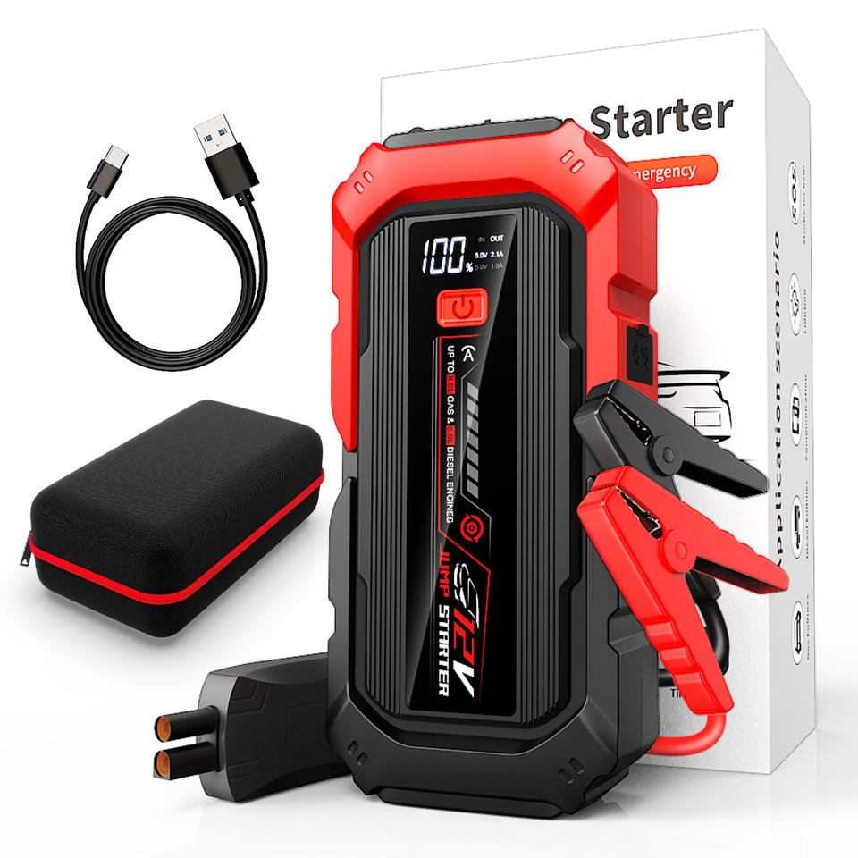 เครื่องจั๊มสตาร์ท 12V พร้อมหน้าจอดิจิตอล สำหรับจ่ายไฟฉุกเฉินในรถยนต์ ใช้ได้กับเครื่องยนต์ดีเซลและเบนซิน