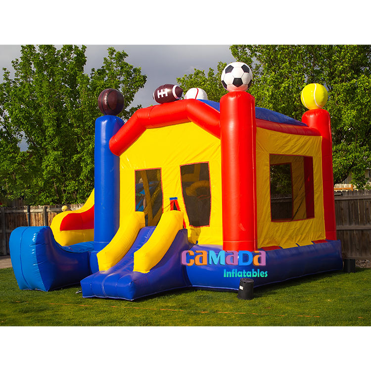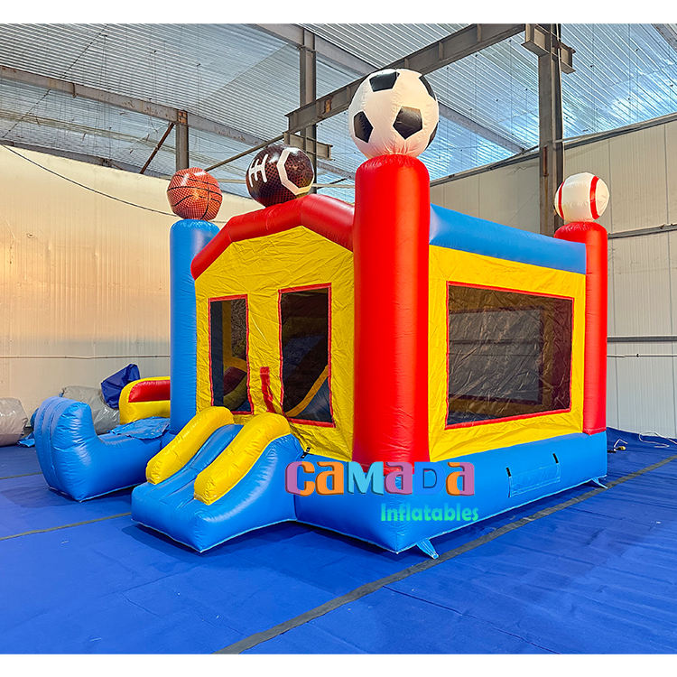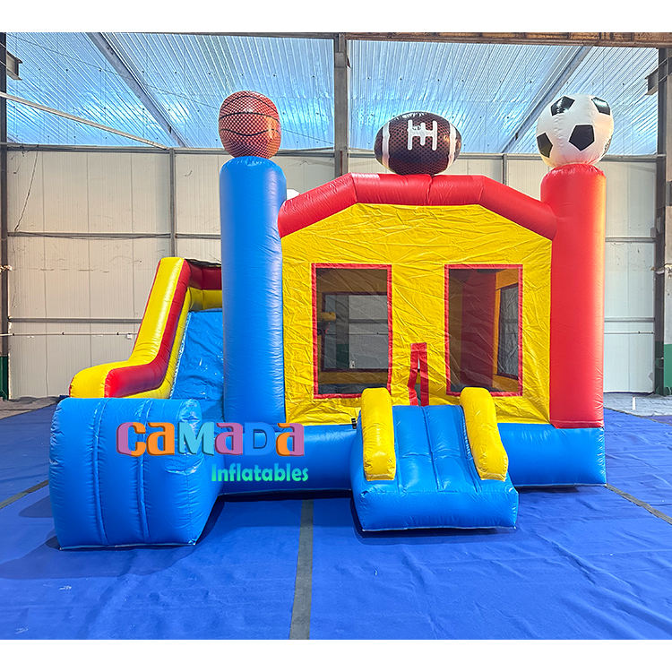บ้านเป่าลมแบบมีสไลเดอร์สำหรับเล่นฟุตบอลและบาสเก็ตบอล