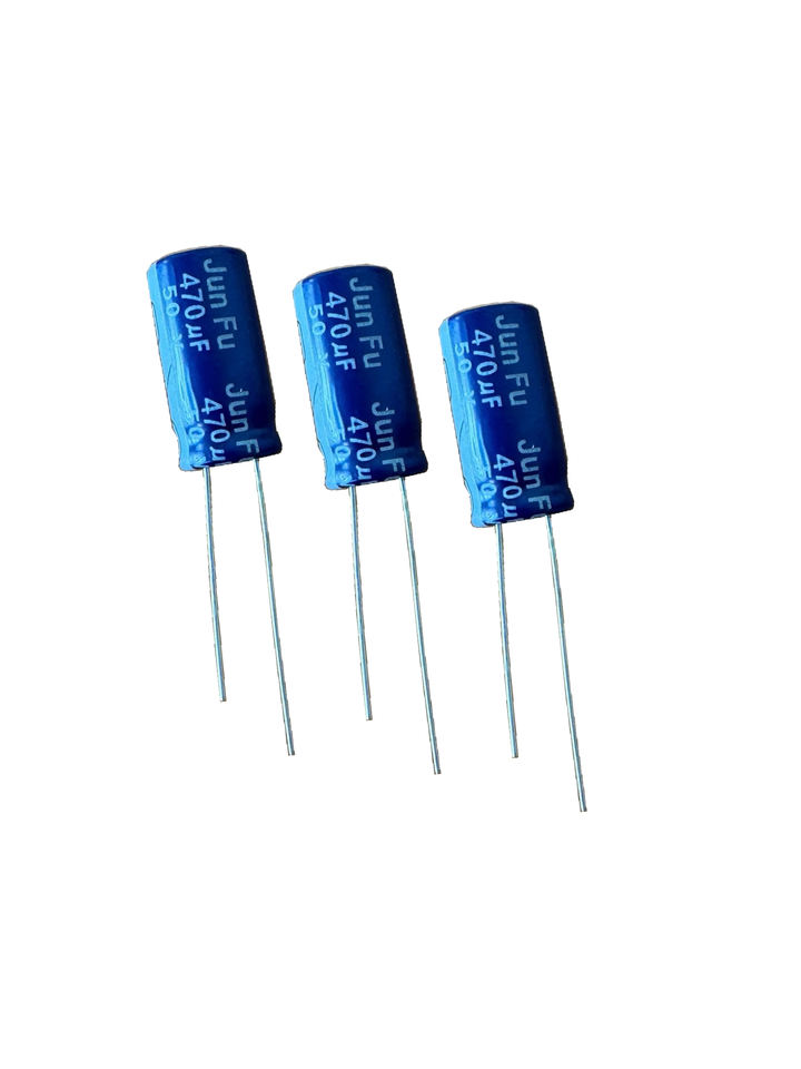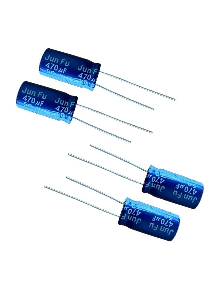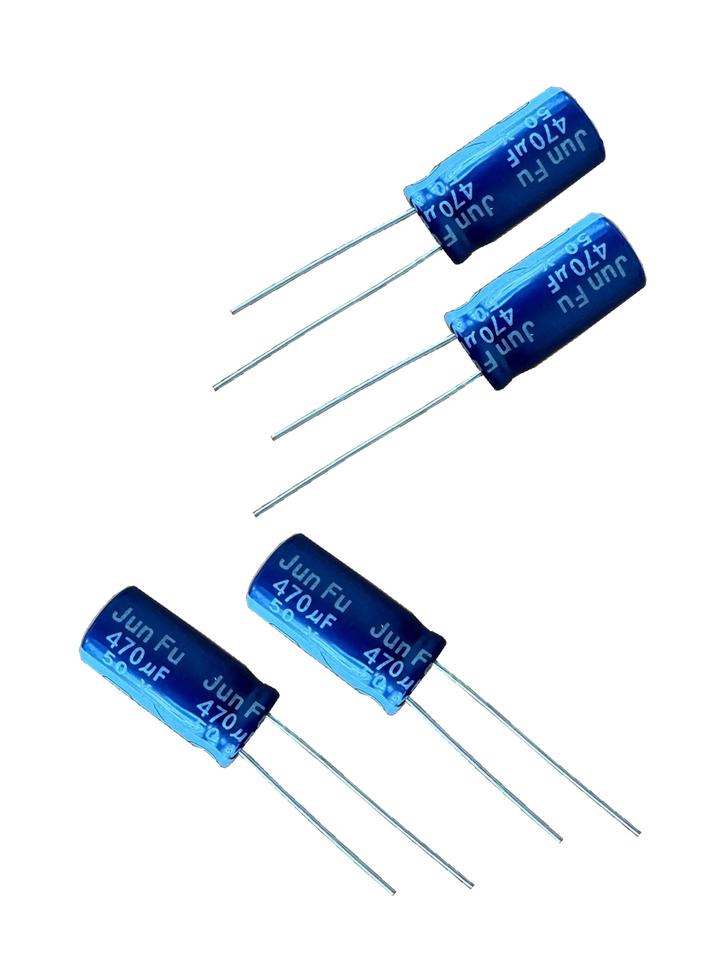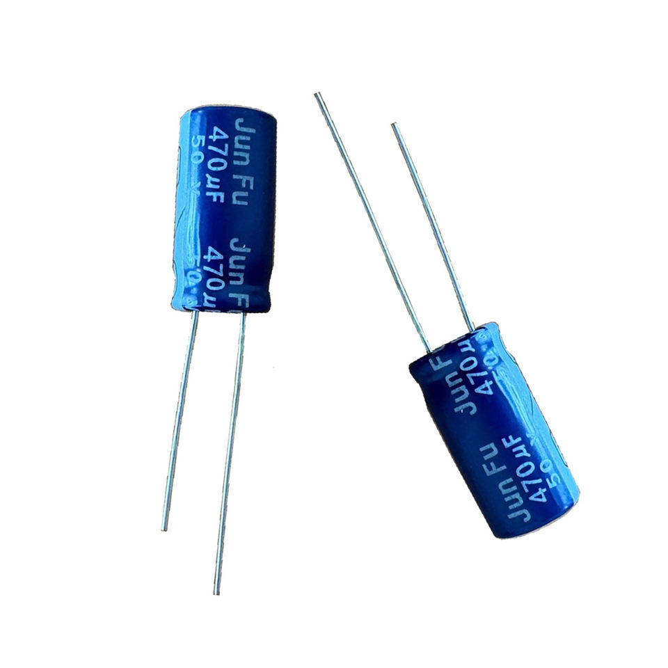 ตัวเก็บประจุอะลูมิเนียมอิเล็กโทรไลต์ Jun Fu รุ่น TN4711HD20ML00BV 470uF 10x20 มม. สำหรับกรองสัญญาณความถี่ต่ำในกระแสไฟ