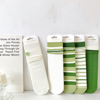Juncap Women's Green Long Socks Simple Design Comfortable Stockings for Spring Summer Fall Winter for Students and Adults