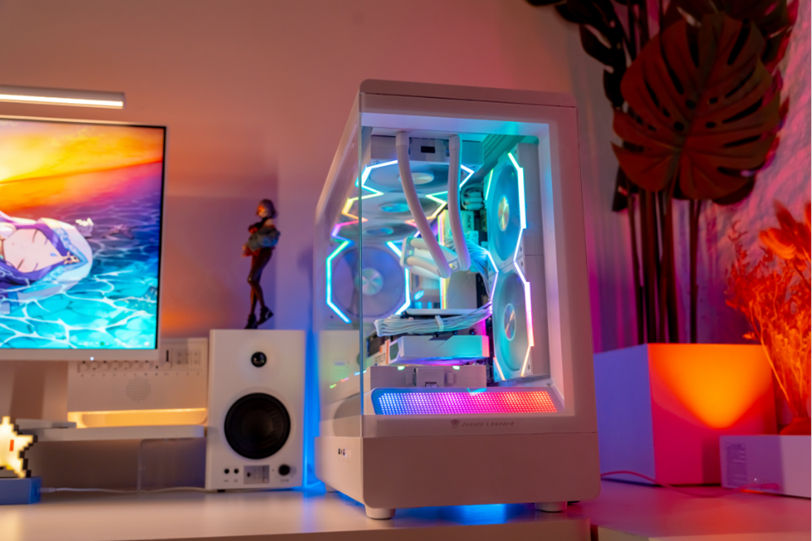 เคสลายเสือดาวป่าสำหรับเล่นเกมคอมพิวเตอร์หอคอยขนาดกลางที่ได้รับความนิยมดีไซน์ให้พอดีกับ MATX แบบติดกระจกนิรภัยไม่มีกรอบซีพียูพัดลม