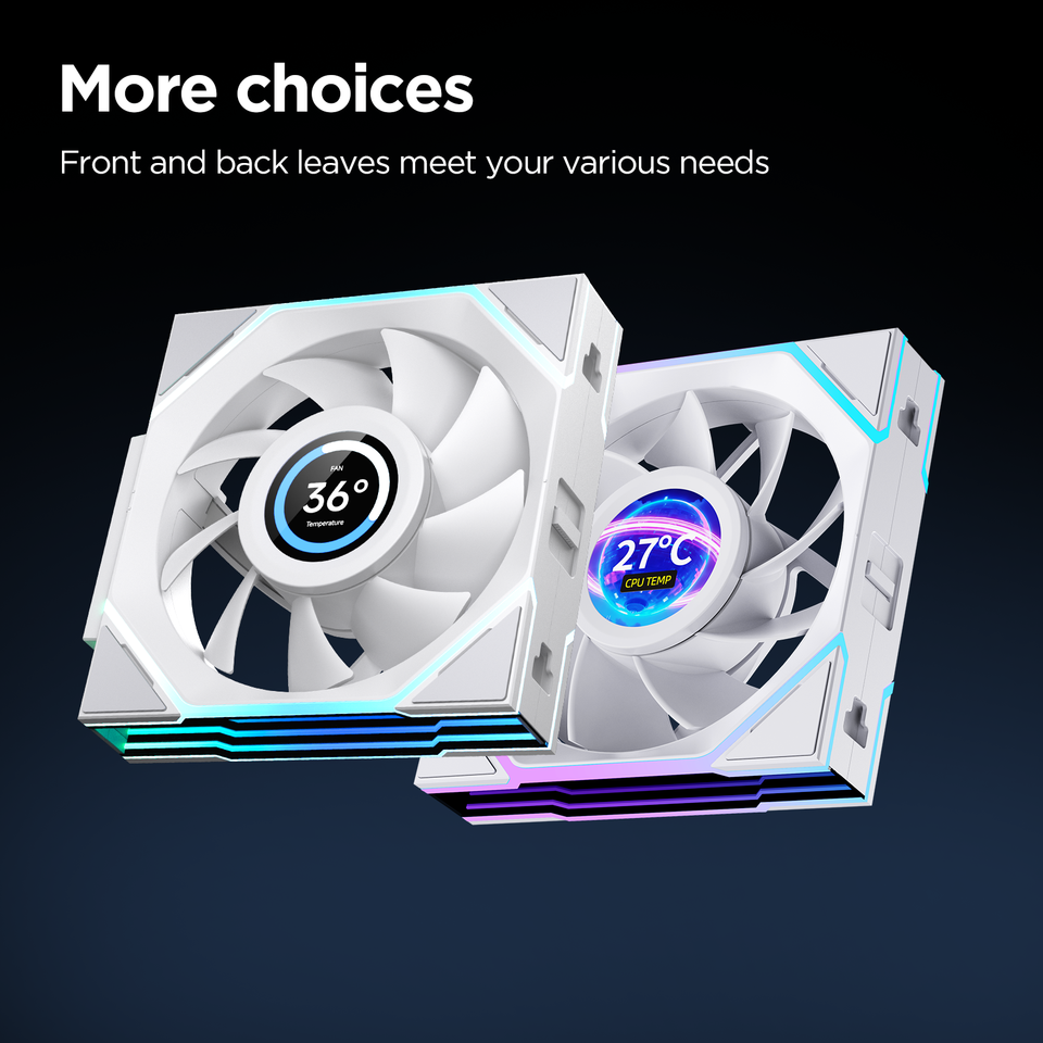 พัดลมเคสคอมพิวเตอร์สำหรับเล่นเกม Jungle Leopard V4 หน้าจอ LCD 2.8 นิ้ว ARGB 600-2100 รอบต่อนาที พัดลม PWM 55.4CFM เสียงเบา ขนาด 120x120x28 มม.