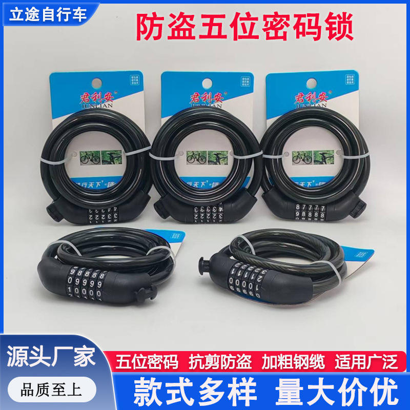 กุญแจล็อคจักรยานจุนลี่อัน 120 ซม. สีดำ รหัส 5 หลัก ล็อคสายกันขโมย สำหรับจักรยานเสือภูเขา ใช้สำหรับนักเรียน
