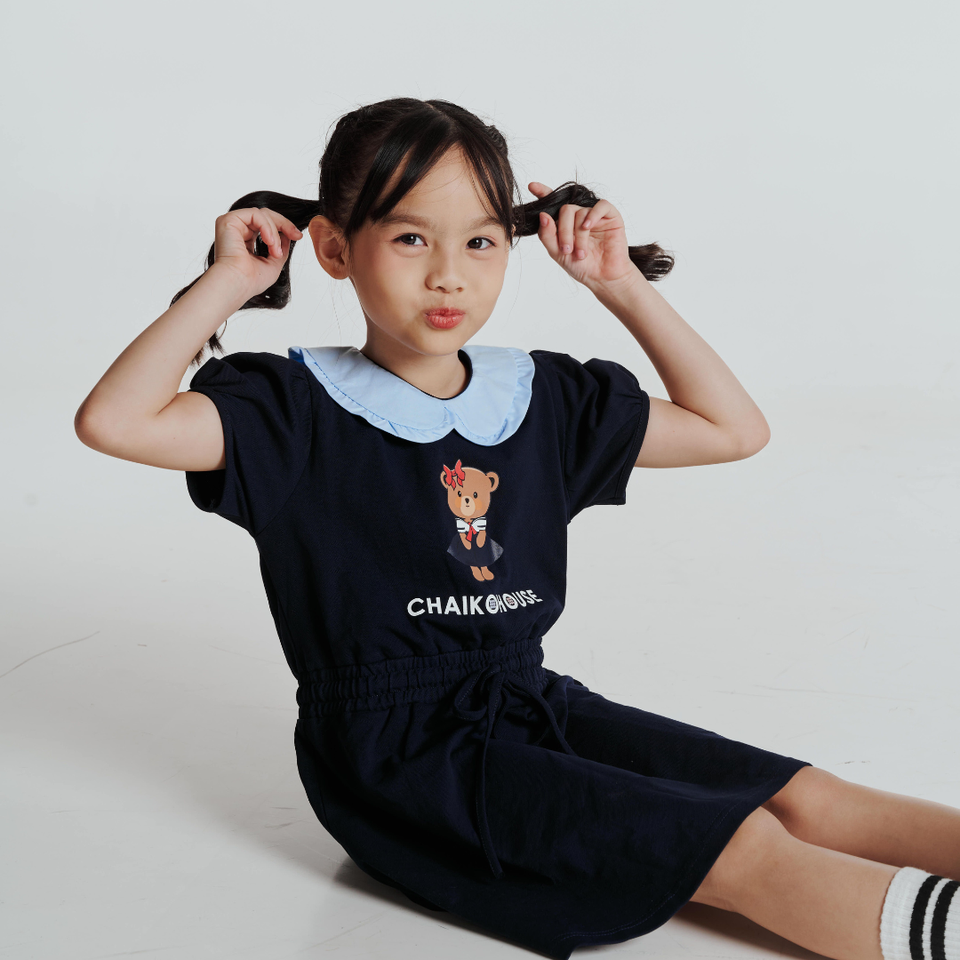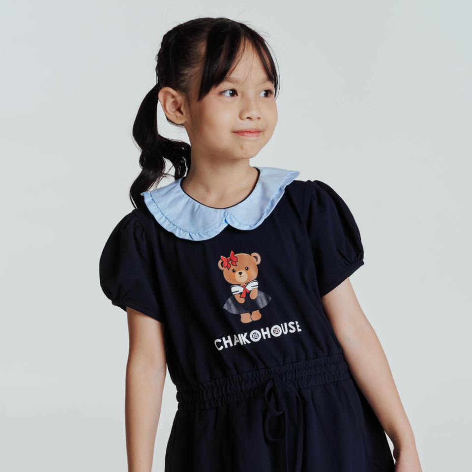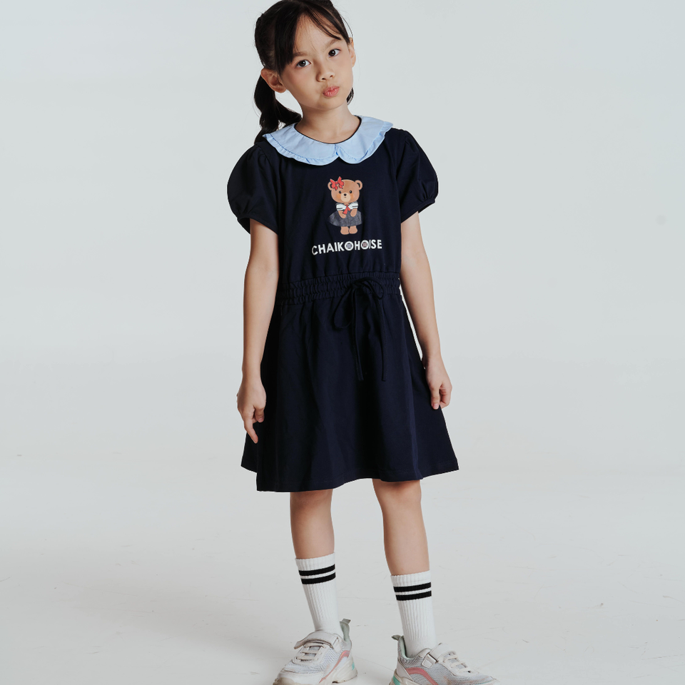 ชุดจูโน่เดรส100% พิมพ์ลายการ์ตูนหมีผ้าฝ้ายชุดเด็กผู้หญิงสำหรับเทศกาลคริสต์มาส
