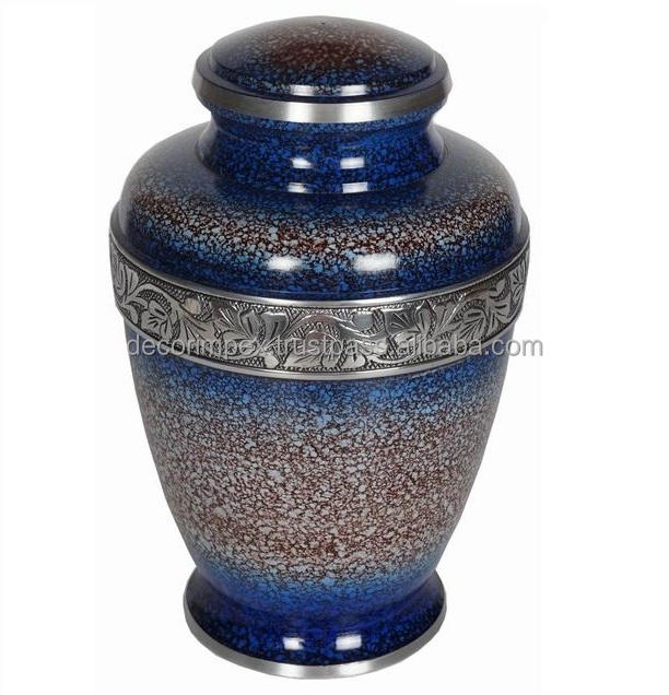 เพิ่งเปิดตัวสีน้ำเงินคลาสสิกที่มีลวดลายเหมือนเสียงแตกสีขาวหรือสีเงินโกศโลหะสำหรับเถ้ามนุษย์และโกศงานศพ