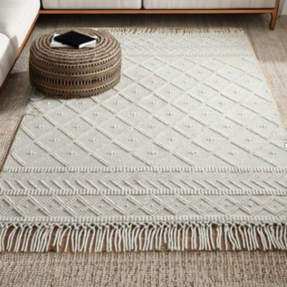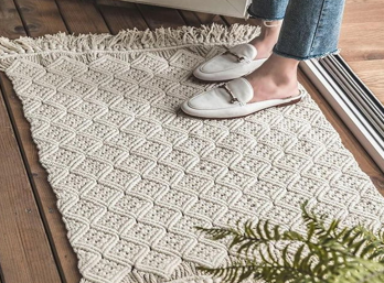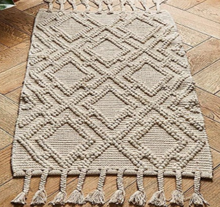 พรมปูพื้นลายดอกไม้ถักจากปอกระเจา กันลื่น เป็นมิตรกับสัตว์เลี้ยง เป็นมิตรกับสิ่งแวดล้อม ใช้ได้สองด้าน ไม่ยับง่าย ขนสั้น