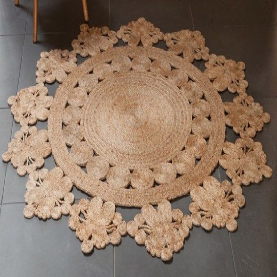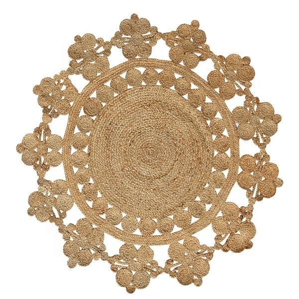 พรมปอกระเจาถักลายดอกเดซี่รอบมือ,พรมปูพื้นทรงกลมสำหรับตกแต่งห้องนั่งเล่นพรมตกแต่งบ้าน