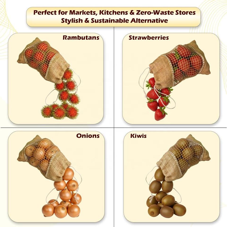 Product name:Natural jute mesh drawstring produce bag
