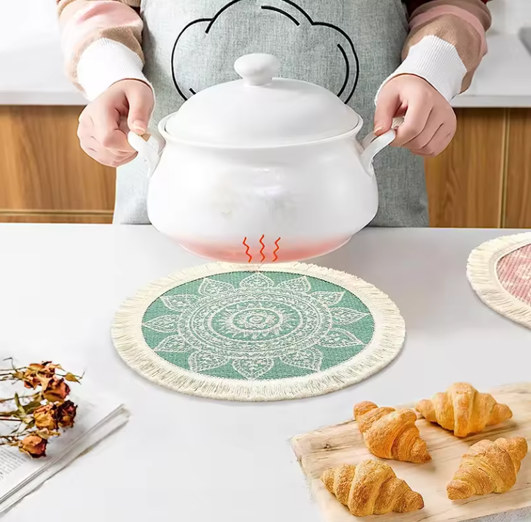 Jute Drink Coasters and Placemats Boho Rattan Braided Heat Resistant Coffee Table Home Kitchen for sale