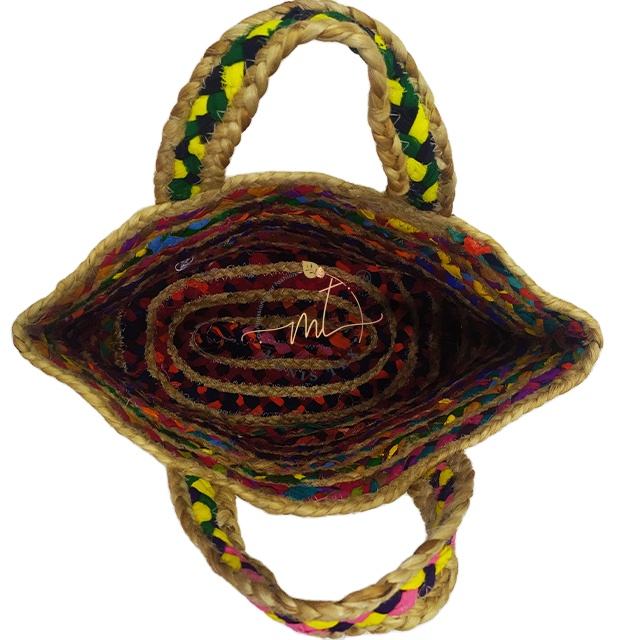 ปอกระเจาทำด้วยมือรีไซเคิลกระเป๋า Chindi เป็นมิตรกับสิ่งแวดล้อมแบบพกพารูปทรงเรขาคณิตค่าใช้จ่ายโรงงาน