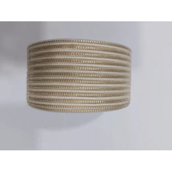 ผ้าลูกไม้ปอกระเจาขอบลายทางสีเบจ ความแข็งแรงสูง ปรับแต่งได้ ผ้าม่านสองด้านสำหรับตกแต่งบ้าน