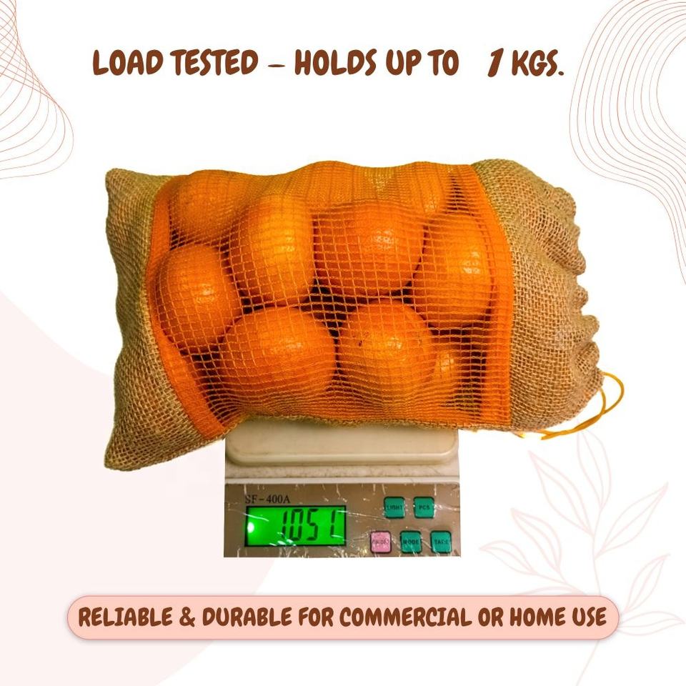 ถุงตาข่ายปอกระเจาแบบมีเชือกผูก ขนาด 25*20 ซม. ใช้ซ้ำได้ รับน้ำหนักได้ 1 กก. ถุงเก็บของอเนกประสงค์ ดีไซน์สวยงาม เป็นธรรมชาติ สำหรับใส่ผัก ผลไม้ และของสด